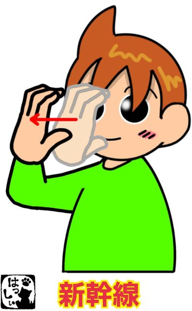 手話単語:413 【新幹線】 2016年08月31日 こんにちはヾ(´ω`=´ω`)ノ【新幹線】湾曲させた右手を顔の前に構えたら、そのまま前に出します。初期のころの新幹線の顔を表しているそうです。それではまた(。・ω・)ノ゙いつも訪問・応援ポチありがとうございます!励みになりますのでこれからもよろしくおねがいします。ε=ε=ε=(●・д・ノ)ノ【。+゚:.感謝.:゚+。】 「手話単語」カテゴリの最新記事 < 前の記事次の記事 > コメント コメント一覧 (6) 6. はっしぃ 2021年10月17日 10:24 猫さん がんばりますーーー!!!!! 5. 猫 2021年10月16日 14:12 頑張ってーーー!!!!!!! 4. はっしぃ 2021年08月16日 10:26 猫さん こちらにもコメントありがとうございます! 3. 猫 2021年08月15日 11:37 すんごーーーい!! 2. はっしぃ 2021年02月25日 09:30 あ さん コメントありがとうございます。 本当に手話はすごいですよね!よく形を手で表しています。 奥が深いですね! 1. あ 2021年02月24日 19:09 すごい‼️ コメントフォーム 名前 コメント 記事の評価 リセット リセット 顔 星 情報を記憶 コメントを投稿する