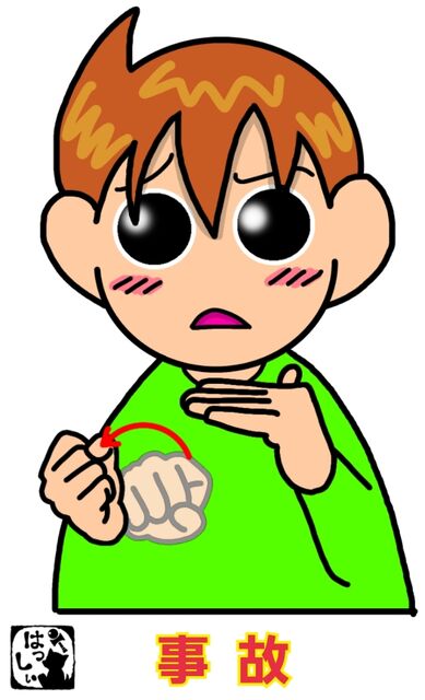 手話単語:447 【事故】 2016年10月08日 こんにちは(*^・ェ・)ノ【事故】左手は指文字の【コ】の形にして、【コ】の下あたりで、右手は手の甲が上になるようにグーにしてコキッと折ります。【事】と【壊れる】が一緒になった表現です。 それではまた((ヾ( ◍´꒳`◍ )いつも応援ありがとうございます!良ければ下↓のしゅうくんをポチっと押してね!じこ 「手話単語」カテゴリの最新記事 タグ :#災害・気象・環境関係#生活一般・家庭 < 前の記事次の記事 > コメント コメントフォーム 名前 コメント 記事の評価 リセット リセット 顔 星 情報を記憶 コメントを投稿する
