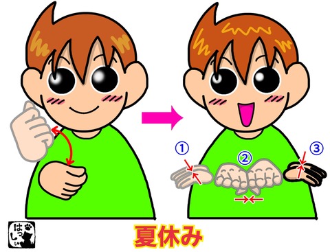 手話単語:378 【夏休み】 2016年07月21日 こんにちはヾ(´ω`=´ω`)ノ【夏休み】【夏】+【連休】季節を入れ替えて【冬休み】【春休み】と表現します。 それではまた((ヾ( ◍´꒳`◍ )いつも応援ありがとうございます!良ければ下↓のしゅうくんをポチっと押してね!なつやすみ・ふゆやすみ・はるやすみ ... 続きを読む