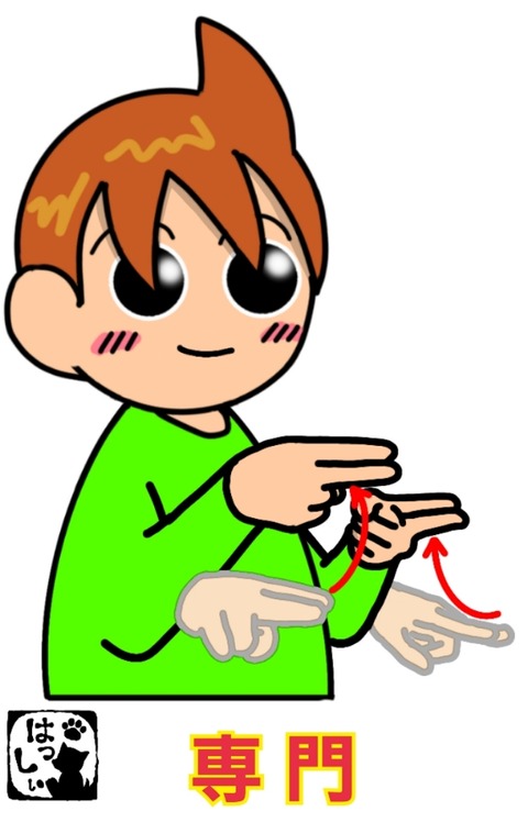 手話単語:380 【専門】 2016年07月23日 こんにちはヾ(´ω`=´ω`)ノ【専門】両手の人差し指と中指をまっすぐ伸ばして、両手の間隔を狭めながら上へあげます。それではまた(。・ω・)ノ゙ せんもん ... 続きを読む