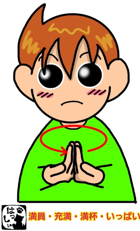 手話単語:381 【満員】【充満】【満杯】【いっぱい】 2016年07月24日 こんにちは(*・ω・)ノ【満員・充満・満杯・いっぱい】両手の指の背をくっつけて指先は上に向け、クルンと水平に円を描きます。人が立っておしくらまんじゅうのようになっている状況を表しています。 それではまた((ヾ( ◍´꒳`◍ )いつも応援ありがとうございます!良ければ ... 続きを読む