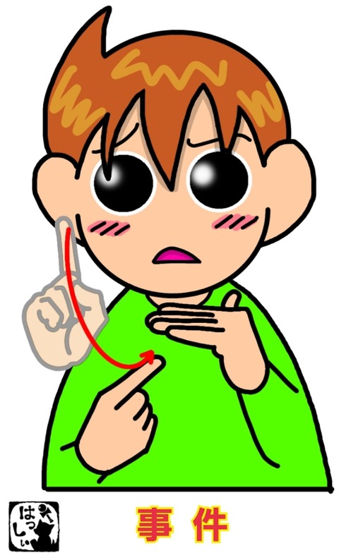 手話単語:446 【事件】 2016年10月07日 こんにちは(=゚ω゚)人(゚ω゚=)【事件】左手は指文字の【コ】の形にして、左手の【コ】の下で、右手の人差し指をすくいあげます。【事】と【起きる】が一緒になった表現です。 それではまた((ヾ( ◍´꒳`◍ )いつも応援ありがとうございます!良ければ下↓のしゅうくんをポチ ... 続きを読む