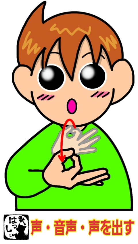 手話単語:497 【声】【音声】【声を出す】 2016年12月08日 こんにちは(。・ω・)ノ゙【声・音声・声を出す】右手の人差し指と親指で輪を作って、喉から弧を描きながら前に出します。それではまた(。・ω・)ノ゙いつも応援ポチありがとうございます!励みになりますのでこれからもよろしくおねがいします。ε=ε=ε=(●・д・ノ)ノ【。+゚:.感謝.:゚+ ... 続きを読む