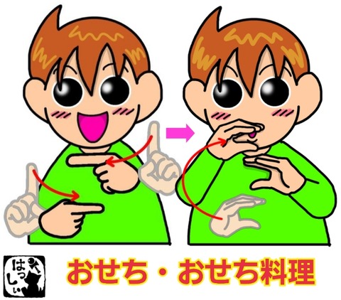 手話単語:504 【おせち】【おせち料理】 2016年12月30日 こんにちはヾ(´ω`=´ω`)ノ【おせち料理】両手人差し指を左右からスッと引き寄せて上下に置いたら、【正月】両手をコの字にして左手の下に右手を置いたら、その手は弧を描くように、上にのせます。重箱を重ねるイメージです(⌒-⌒) それではまた(。・ω・)ノ゙いつも応援あり ... 続きを読む