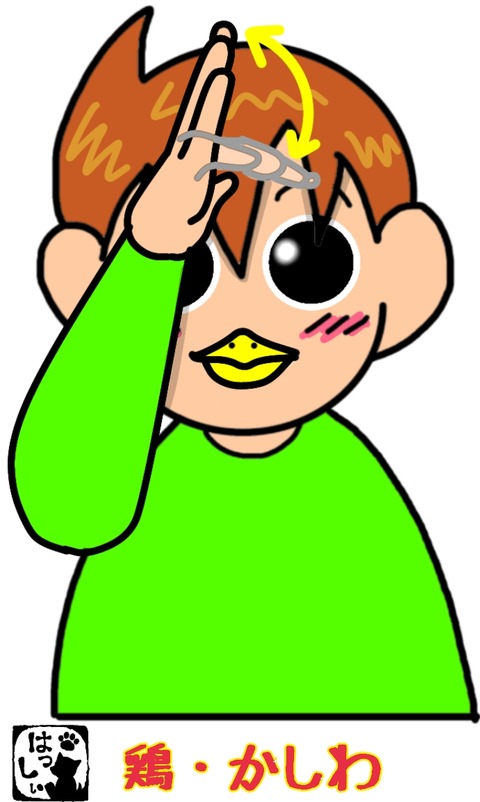 手話単語:493 【鶏】【かしわ】・【鳥】 2016年12月02日 こんにちはヾ(´ω`=´ω`)ノ2017年の干支は[酉年]ですね(´∀`*)一般的にはこの【酉】はニワトリだと思うので、【鶏・かしわ】右手を開いて親指の先をおでこにつけて、立てた4指を数回折り曲げます。ニワトリのトサカを表しているそうです。多分、ニワトリなら↑な ... 続きを読む