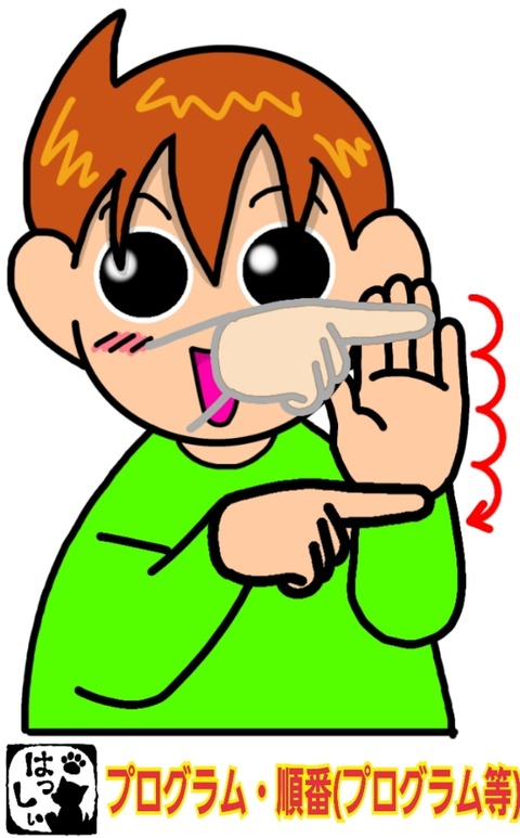 手話単語:992 【プログラム】【順番(プログラム等)】 2019年04月15日 こんにちは(*^・ェ・)ノ【プログラム・順番(プログラム等)】左の手のひらを立てたら、右手の人差し指で左の手のひらに段をつけて下へおろしていきます。計画表の予定が上から順番に書かれている様子です。それではまた((ヾ( ◍´꒳`◍ )いつも応援ありがとうございます!良けれ ... 続きを読む