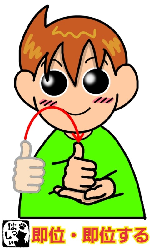手話単語:999 【即位】【即位する】 2019年04月22日 こんにちは(*・ω・)ノ【即位・即位する】右手の親指を立てて横に構えたら、体の中央に置いた左の手のひらに弧を描いてのせます。それではまた(。・ω・)ノ゙ ... 続きを読む