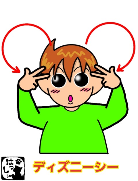手話単語:1001 【ミッキーマウス】【ディズニーランド】【浦安市】 2019年04月26日 こんにちは(*・ω・)ノ【ミッキーマウス・ディズニーランド・浦安市】両手の人差し指で頭の両側にクルンと円を描きます。ミッキーマウスの耳を表しています。それではまた((ヾ( ◍´꒳`◍ )いつも応援ありがとうございます!良ければ下↓のしゅうくんをポチっと押してね!みっ ... 続きを読む