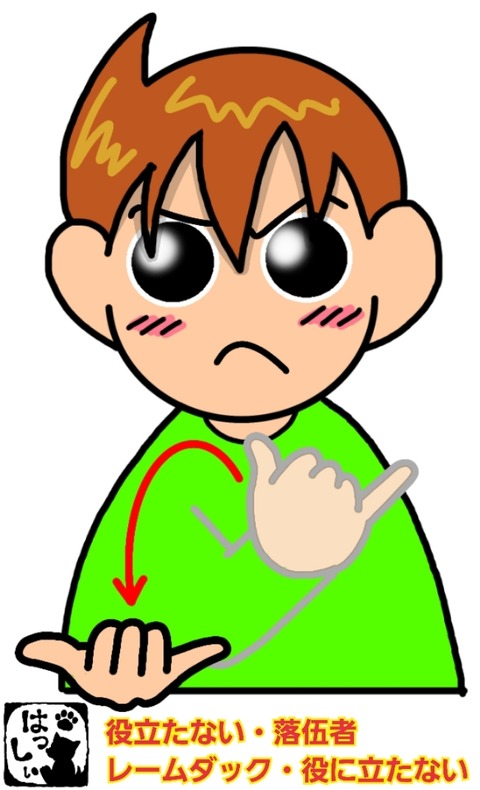 手話単語:994 【役立たない】【落伍者】【レームダック】【役に立たない】 2019年04月17日 こんにちは(*・ω・)ノ【役立たない・落伍者・レームダック・役に立たない】右手の親指と小指の2指を立てて左肩にあてて、前方におろします。【役に立つ】【役立つ】それではまた(。・ω・)ノ゙ ... 続きを読む