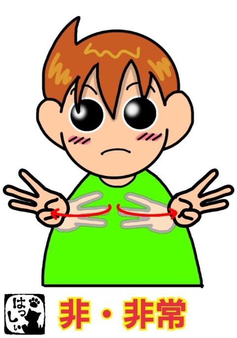 手話単語:1084 【非】【非常】 2019年11月16日 こんにちは(*・ω・)ノ【非・非常】両手の人差し指、中指、薬指の3指を伸ばして、指先を向かいわせたら、それぞれの手首を軸に左右へ引き離します。漢字の【非】の字形を表しています。それではまた((ヾ( ◍´꒳`◍ )いつも応援ありがとうございます!良ければ下↓のしゅうく ... 続きを読む