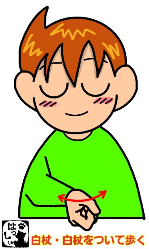 手話単語:1079 【白杖】【白杖をついて歩く】 2019年11月11日 こんにちは(*・ω・)ノ【白杖・白杖をついて歩く】グーにした右手の指側を下にして左右に振ります。盲人が杖を使って歩く様子です。それではまた((ヾ( ◍´꒳`◍ )いつも応援ありがとうございます!良ければ下↓のしゅうくんをポチっと押してね!はくじょう・はくじょうをつい ... 続きを読む