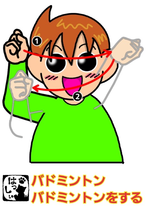 手話単語:1082 【バドミントン】【バドミントンをする】 2019年11月14日 こんにちはヾ(´ω`=´ω`)ノ【バドミントン・バドミントンをする】顔の高さでグーにした右手を左方に振って、返す手で右方へ振ります。バドミントンのラケットを振るしぐさです。それではまた((ヾ( ◍´꒳`◍ )いつも応援ありがとうございます!良ければ下↓のしゅうくん ... 続きを読む