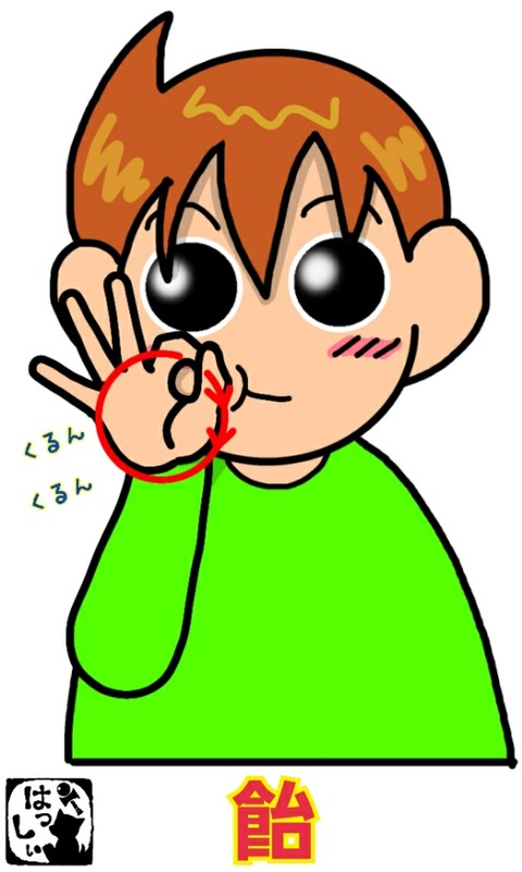 手話単語:1182 【飴】 2021年06月07日 こんにちは(*・ω・)ノ【飴・あめ・アメ】舌で右のほっぺを内側から押して飴が入っているように膨らませて、右手の親指と人差し指で作った輪を右の頬の横でクルンクルンと回します。飴玉がコロコロ口の中で転がっているイメージで!それではまた((ヾ( ◍´꒳`◍ )いつも応援あ ... 続きを読む