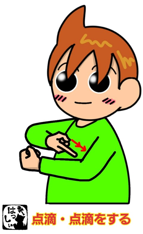 手話単語:1189 【点滴】【点滴をする】 2021年06月18日 こんにちは(*・ω・)ノ【点滴・点滴をする】左腕を斜めに寝かせたら、右手の人差し指の指先でツンツンと突っつきます。それではまた(。・ω・)ノ゙いつも応援ありがとうございます!励みになりますのでこれからもよろしくおねがいします。ε=ε=ε=(●・д・ノ)ノ【。+゚:.感謝.:゚+。】 ... 続きを読む
