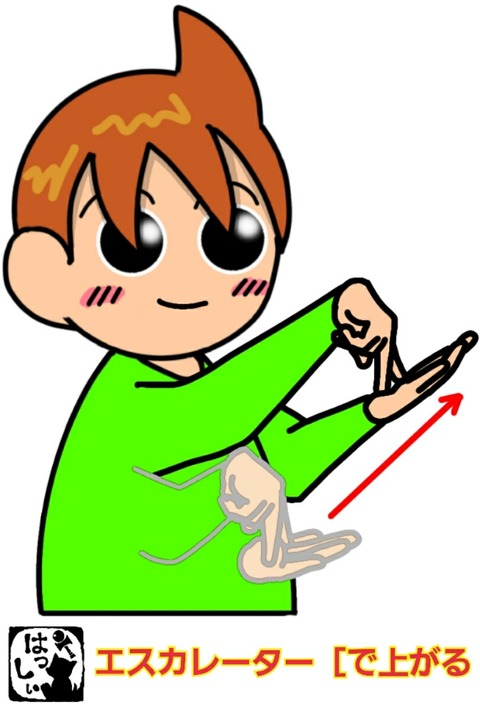 手話単語:1184 【エスカレーター】【エスカレーターで上がる】 2021年06月09日 こんにちは(*・ω・)ノ【エスカレーター・エスカレーターで上がる】左手の手のひらに伸ばした右手の人差し指と中指を立てて、同時にスッと斜め上へ上げます。エスカレーターで人が上がる様子です。それではまた((ヾ( ◍´꒳`◍ )いつも応援ありがとうございます!良ければ下↓ ... 続きを読む