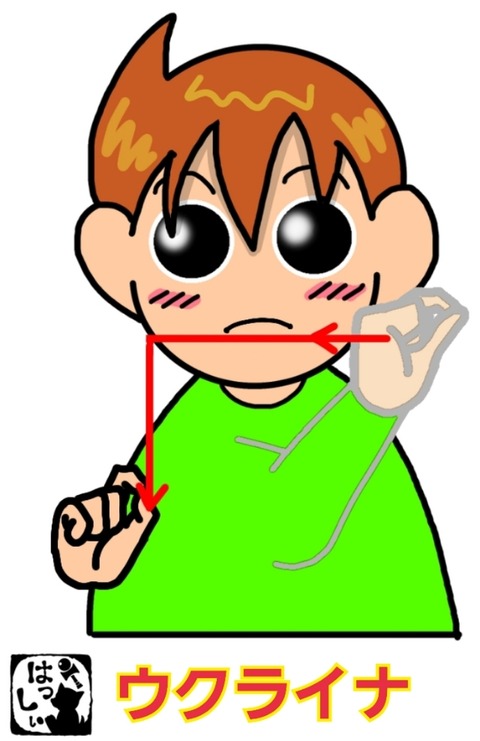 手話単語:1272 【ウクライナ】 2022年03月19日 こんにちは(*・ω・)ノ【ウクライナ】右手の人差し指を曲げて親指の先をつけ、顔の左側からスッと右に動かして下にさげます。それではまた(。・ω・)ノ゙いつも応援ありがとうございます!励みになりますのでこれからもよろしくおねがいします。ε=ε=ε=(●・д・ノ)ノ【。+゚:.感謝.:゚ ... 続きを読む