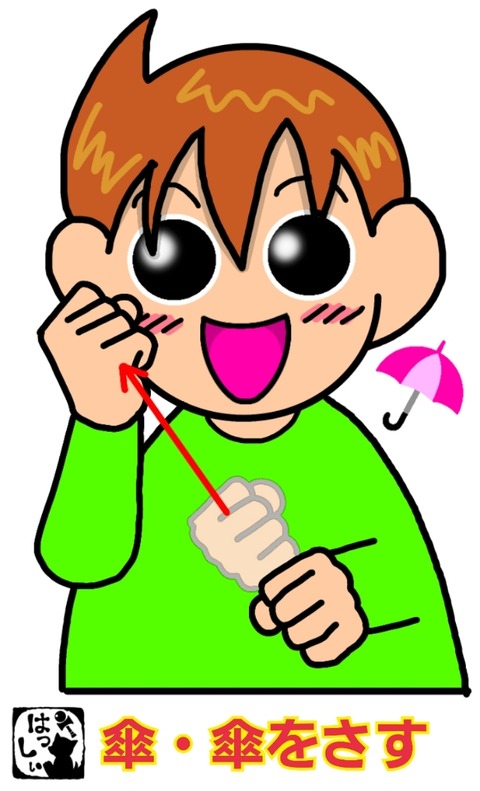 手話単語:1281 【傘】【傘をさす】 2022年04月22日 こんにちは(*・ω・)ノ【傘・傘をさす】両手をグーにして少し斜めにして上下にくっつけたら、右手だけスッと上に上げます。 それではまた(。・ω・)ノ゙いつも応援ポチありがとうございます!励みになりますのでこれからもよろしくおねがいします。ε=ε=ε=(●・д・ノ)ノ【。+゚:.感謝 ... 続きを読む