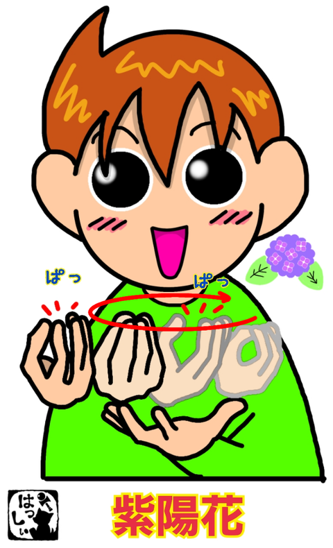 手話単語:1303 【紫陽花(あじさい)】 2022年06月07日 こんにちは(*・ω・)ノ【紫陽花・アジサイ】少し指を曲げた左の手のひらの上で、指先を上に向けてつけた右手をパッパッと開閉させながら、水平方向へ回します。小さな花がたくさん集まっている様子を表しています。それではまた(。・ω・)ノ゙いつも応援ポチありがとうございます! ... 続きを読む