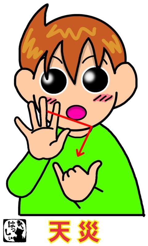 手話単語:1314 【天災】 2022年06月20日 こんにちは(*・ω・)ノ【天災】左手は小指と親指を立てて、手の甲を相手側にして構え、開いた右手でくの字を書きます。それではまた(。・ω・)ノ゙いつも応援ポチありがとうございます!励みになりますのでこれからもよろしくおねがいします。ε=ε=ε=(●・д・ノ)ノ【。+゚:.感謝.:゚+ ... 続きを読む