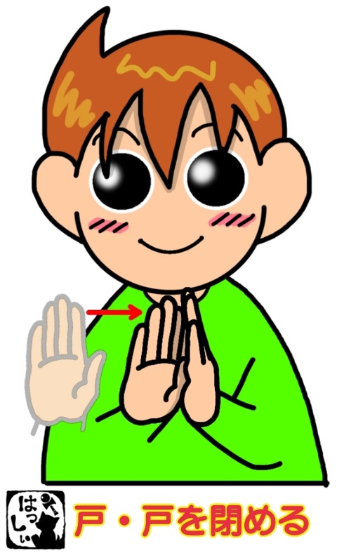 手話単語:1330 【戸】【戸を閉める】 2022年07月25日 こんにちは(*・ω・)ノ【戸・戸を閉める】左の手のひらを内側に向けて立てたら、手のひらを前に向けて立てた右手をスッと親指側から左の手のひらにつけます。戸を閉めるイメージです。それではまた(。・ω・)ノ゙いつも応援ポチありがとうございます!励みになりますのでこれからも ... 続きを読む