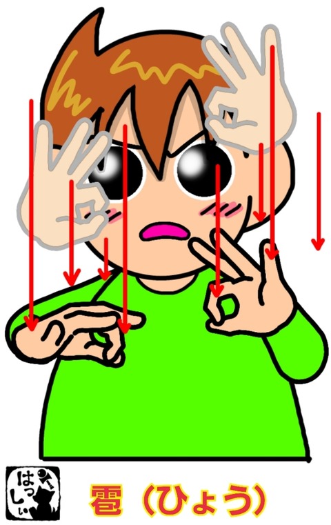 手話単語:1323 【雹(ひょう)】 2022年07月08日 こんにちは(*・ω・)ノ【雹(ひょう)】両手の2指で輪を作り、交互に素早く叩きつけるように動かします。それではまた(。・ω・)ノ゙いつも応援ポチありがとうございます!励みになりますのでこれからもよろしくおねがいします。ε=ε=ε=(●・д・ノ)ノ【。+゚:.感謝.:゚+。】 ... 続きを読む
