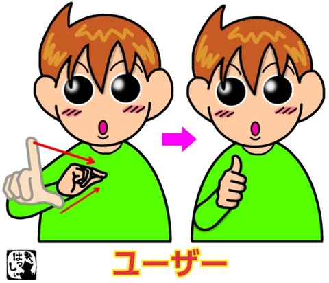 手話単語:1715 【ユーザー】 2023年06月30日 こんにちは(*・ω・)ノ【ユーザー】前に向けて開いた右手の人差し指と親指の2指を、手前に引き寄せながらつまんで、【利用】立てた親指を体の前に置きます。【人】それではまた((ヾ( ◍´꒳`◍ )いつも応援ありがとうございます!良ければ下↓のしゅうくんをポチっと押してね ... 続きを読む