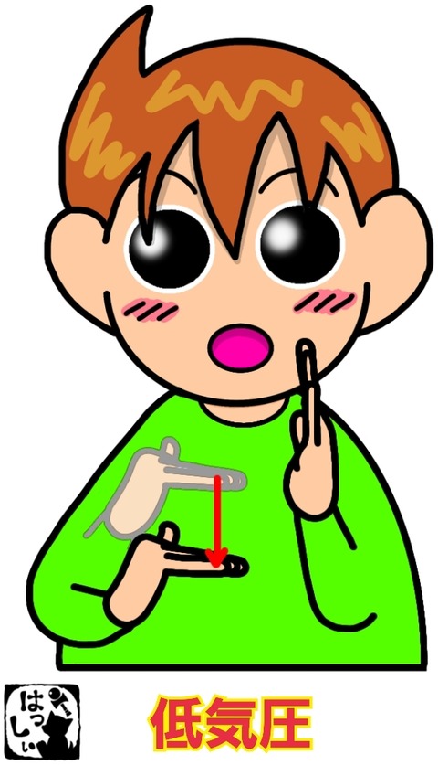 手話単語:1758 【気圧】 2023年09月12日 こんにちは(*・ω・)ノ【気圧】右手は指文字の【コ】の形にして、指先は立てた左手の手のひらに向けて上下させます。左手は目盛計、右手は目盛を示しています。それではまた((ヾ( ◍´꒳`◍ )いつも応援ありがとうございます!良ければ下↓のしゅうくんをポチっと押してね!き ... 続きを読む