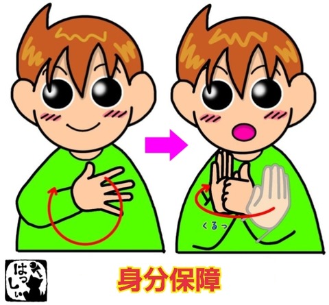 手話単語:1752 【身分保障】 2023年09月01日 こんにちは(*・ω・)ノ【身分保障】右手を開いて、手のひらを胸の前で1回転させて、【体】立てた左の親指の周りを指文字の【ホ】の形にした右手で、囲むようにくるっと回します。【保障】それではまた((ヾ( ◍´꒳`◍ )いつも応援ありがとうございます!良ければ下↓のしゅう ... 続きを読む