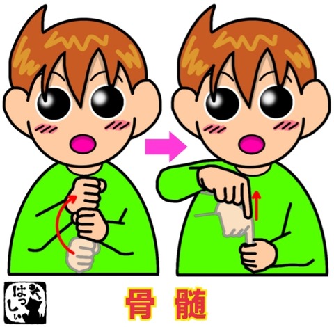 手話単語:1755 【骨髄】 2023年09月06日 こんにちは(*・ω・)ノ【骨髄】グーにした両手を重ねたら、右手のグーを上げて左手にのせ、残した左手のグーの5指の輪の中に右手の人差し指を入れて上に引き抜きます。それではまた((ヾ( ◍´꒳`◍ )いつも応援ありがとうございます!良ければ下↓のしゅうくんをポチっと押し ... 続きを読む