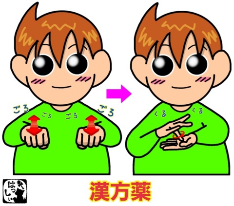 手話単語:2090 【漢方薬】 2024年09月27日 こんにちは(*・ω・)ノ【漢方薬】両手をグーにして左右に置いたら前後に動かして、【漢方】右手の薬指の指先を、上に向けた左の手のひらの上で小さな円を描くようにこすります。【薬】 それではまた((ヾ( ◍´꒳`◍ )いつも応援ありがとうございます!良ければ下↓のしゅうくん ... 続きを読む