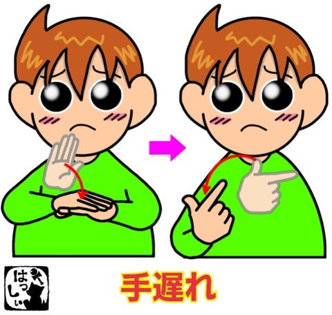 手話単語:2073 【手遅れ】 2024年09月08日 こんにちは(*・ω・)ノ【手遅れ】左手の甲を右の手のひらで叩いて、上向きに開いた右手の親指と人差し指の2指を左から右へ、ゆっくり弧を描いて下ろします。 それではまた((ヾ( ◍´꒳`◍ )いつも応援ありがとうございます!良ければ下↓のしゅうくんをポチっと押してね!てお ... 続きを読む