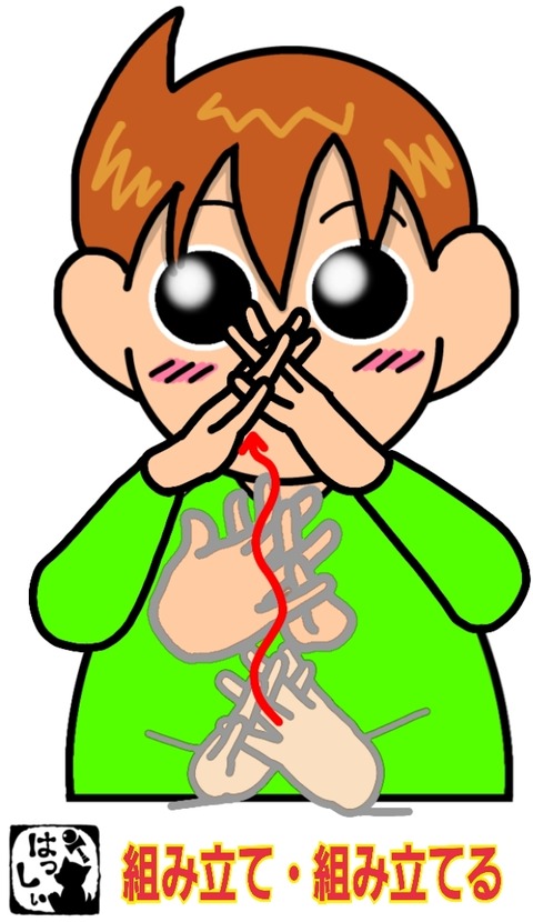 手話単語:2074 【組立て】【組み立てる】 2024年09月09日 こんにちは(*・ω・)ノ【組立て・組み立てる】指を斜め上に向けて組んだ両手をねじりながらあげます。それではまた((ヾ( ◍´꒳`◍ )いつも応援ありがとうございます!良ければ下↓のしゅうくんをポチっと押してね!くみたて・くみたてる ... 続きを読む