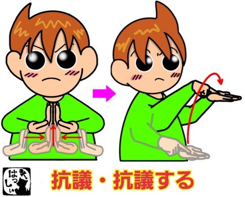 手話単語:2075 【抗議】【抗議する】 2024年09月10日 こんにちは(*・ω・)ノ【抗議・抗議する】指の背を左右からぶつけ合わせて、そのまま両手を上にあげて、【抵抗】左の手のひらに右手の人差し指をのせて、少し上方の前に出します。 それではまた((ヾ( ◍´꒳`◍ )いつも応援ありがとうございます!良ければ下↓のしゅうくんをポ ... 続きを読む