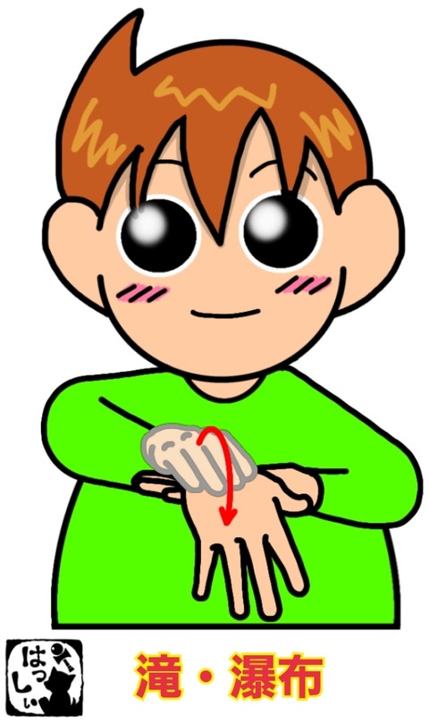 手話単語:2229 【滝】【瀑布】 2025年02月12日 こんにちは(*・ω・)ノ【滝・瀑布】手のひらを下にして横にした左手の小指側から、右手の5指の指先を下に向けて開きながら下ろします。それではまた((ヾ( ◍´꒳`◍ )いつも応援ありがとうございます!良ければ下↓のしゅうくんをポチっと押してね!たき・ばくふ ... 続きを読む