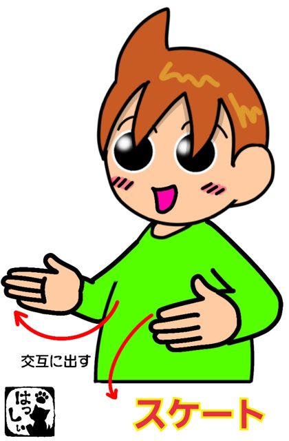 手話単語:735 【スケート】【スケートをする】 2018年02月08日 こんにちは(*・ω・)ノ【スケート・スケートをする】開いた両手の指先を前に向けたら、交互に斜め前に出します。優雅に滑っているイメージで♪ それではまた((ヾ( ◍´꒳`◍ )いつも応援ありがとうございます!気が向いたら下↓のしゅうくんをポチっと押してね!すけーと・すけーとをする 「手話単語」カテゴリの最新記事 タグ :#スポーツ#季節・イベント < 前の記事次の記事 > コメント コメントフォーム 名前 コメント 記事の評価 リセット リセット 顔 星 情報を記憶 コメントを投稿する