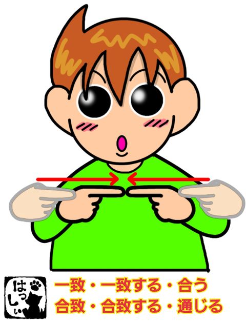 手話単語:800 【一致】【一致する】【合う(通じる等)】【通じる】【合致】【合致する】【疎通】 2018年04月11日 こんにちはv( ̄∇ ̄)v【一致・一致する・合う(通じる等)・合致・合致する・通じる・疎通】両手の伸ばした人差し指の指先を向い合せて、指先を近づけたら指先をつけます。それではまた((ヾ( ◍´꒳`◍ )いつも応援ありがとうございます!気が向いたら下↓のしゅうくんをポチっと押してね!いっち・いっちする・あう・がっち・がっちする・つうじる・そつう 「手話単語」カテゴリの最新記事 タグ :#挨拶・感情・動き < 前の記事次の記事 > コメント コメントフォーム 名前 コメント 記事の評価 リセット リセット 顔 星 情報を記憶 コメントを投稿する