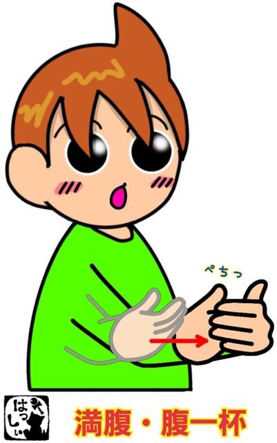 手話単語:816 【満腹】【腹一杯】 2018年04月27日 こんにちは(*^・ェ・)ノ【満腹・腹一杯】お腹の少し前に左手を開いて置いて、お腹に当てた右手の甲を左の手のひらにあてます。いっぱい食べてお腹が膨らむイメージで♪ それではまた((ヾ( ◍´꒳`◍ )いつも応援ありがとうございます!良ければ下↓のしゅうくんをポチっと押してね!まんぷく・はらいっぱい 「手話単語」カテゴリの最新記事 タグ :#生活一般・家庭#医療・介護・福祉関係 < 前の記事次の記事 > コメント コメントフォーム 名前 コメント 記事の評価 リセット リセット 顔 星 情報を記憶 コメントを投稿する