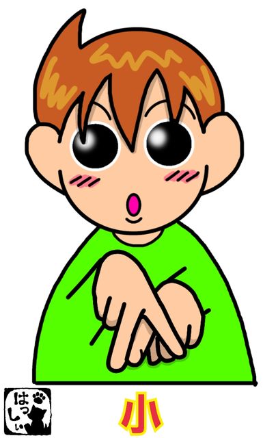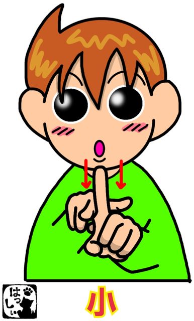 人差し指と中指を伸ばしてピースにした右手で左の人差し指を挟みます。