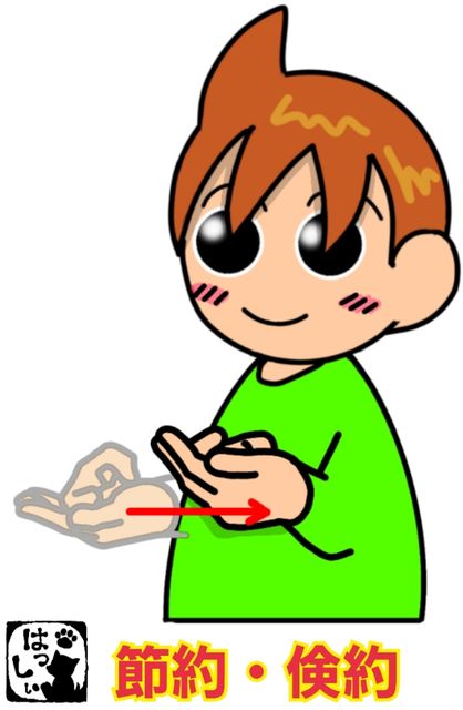 手話単語:960 【節約】【節約する】【倹約】【倹約する】 2018年12月26日 こんにちはヾ(´ω`=´ω`)ノ【節約・節約する・倹約・倹約する】右手の人差し指をカギ状に曲げたら、左の手のひらに載せてスッと手前に引き寄せます。 それではまた((ヾ( ◍´꒳`◍ )いつも応援ありがとうございます!良ければ下↓のしゅうくんをポチっと押してね!せつやく・せつやくする・けんやく・けんやくする 「手話単語」カテゴリの最新記事 タグ :#生活一般・家庭#社会・政治関係 < 前の記事次の記事 > コメント コメントフォーム 名前 コメント 記事の評価 リセット リセット 顔 星 情報を記憶 コメントを投稿する