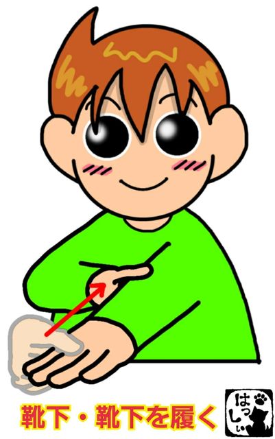 手話単語:962 【靴下】【靴下を履く】 2019年01月08日 こんにちは( ´∀`)つ【靴下・靴下を履く】左手を伸ばして前に出したら、右手の親指と4指で左手をつかんで、指先から腕に沿ってあげます。靴下をスッとはくイメージで♪それではまた((ヾ( ◍´꒳`◍ )いつも応援ありがとうございます!良ければ下↓のしゅうくんをポチっと押してね!くつした・くつしたをはく 「手話単語」カテゴリの最新記事 タグ :#生活一般・家庭#挨拶・感情・動き < 前の記事次の記事 > コメント コメントフォーム 名前 コメント 記事の評価 リセット リセット 顔 星 情報を記憶 コメントを投稿する