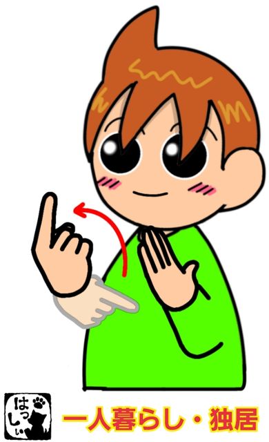 手話単語:985 【一人暮らし】【独居】 2019年04月08日 こんにちは(*・ω・)ノ【一人暮らし・独居】左手は斜めに構えて、右手の人差し指は胸の中央を指し、手首を軸にして上にピンと跳ねあげます。【家】(片手だけ残した形)+【自分】家に住んでいるのは一人だけという意味の表現です。 それではまた(。・ω・)ノ゙いつも応援ありがとうございます!良ければ下のしゅうくんをポチっと押してね!ひとりぐらし・どっきょ 「手話単語」カテゴリの最新記事 タグ :#生活一般・家庭 < 前の記事次の記事 > コメント コメントフォーム 名前 コメント 記事の評価 リセット リセット 顔 星 情報を記憶 コメントを投稿する