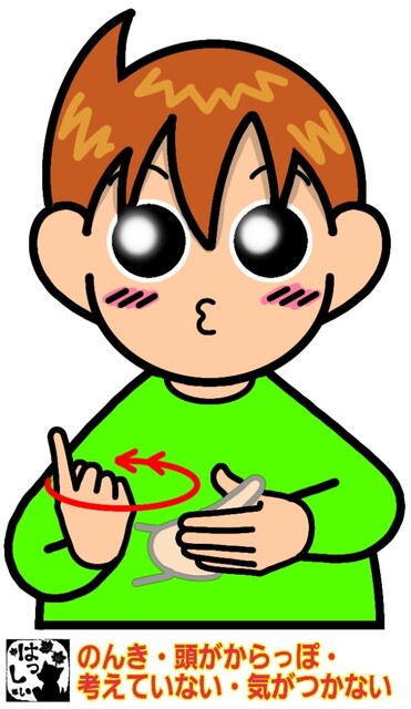 手話単語:1049 【のんき】【頭がからっぽ】【考えていない】【気がつかない】