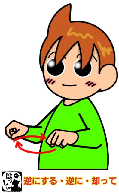 手話単語:1081 【逆にする】【逆に】【却って】 2019年11月13日 こんにちは(*・ω・)ノ【逆にする・逆に・却って】つまんだ両手の指先を下に向けて前後に置いたら、両手の位置を入れ替えます。それではまた((ヾ( ◍´꒳`◍ )いつも応援ありがとうございます!良ければ下↓のしゅうくんをポチっと押してね!ぎゃくにする・ぎゃくに・かえって 「手話単語」カテゴリの最新記事 タグ :#挨拶・感情・動き < 前の記事次の記事 > コメント コメントフォーム 名前 コメント 記事の評価 リセット リセット 顔 星 情報を記憶 コメントを投稿する
