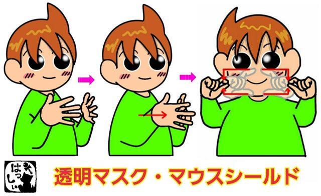 手話単語:1161 【透明マスク】【マウスシールド】 2021年01月30日 こんにちは(*・ω・)ノ【透明マスク・マウスシールド】開いた左手の指の間に、開いた右手の指を差し込み、【透明】両手の親指と人差し指でマスクの形をつくります。【マスク】 それではまた((ヾ( ◍´꒳`◍ )いつも応援ありがとうございます!良ければ下↓のしゅうくんをポチっと押してね!とうめいますく・まうすしーるど 「手話単語」カテゴリの最新記事 タグ :#コロナウイルス関係#医療・介護・福祉関係 < 前の記事次の記事 > コメント コメントフォーム 名前 コメント 記事の評価 リセット リセット 顔 星 情報を記憶 コメントを投稿する