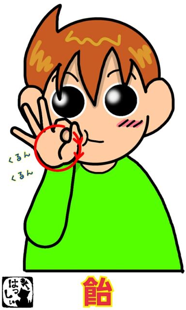 手話単語:1182 【飴】 2021年06月07日 こんにちは(*・ω・)ノ【飴・あめ・アメ】舌で右のほっぺを内側から押して飴が入っているように膨らませて、右手の親指と人差し指で作った輪を右の頬の横でクルンクルンと回します。飴玉がコロコロ口の中で転がっているイメージで!それではまた((ヾ( ◍´꒳`◍ )いつも応援ありがとうございます!良ければ下↓のしゅうくんをポチっと押してね!あめ 「手話単語」カテゴリの最新記事 タグ :#食べ物・飲み物・料理関係 < 前の記事次の記事 > コメント コメントフォーム 名前 コメント 記事の評価 リセット リセット 顔 星 情報を記憶 コメントを投稿する