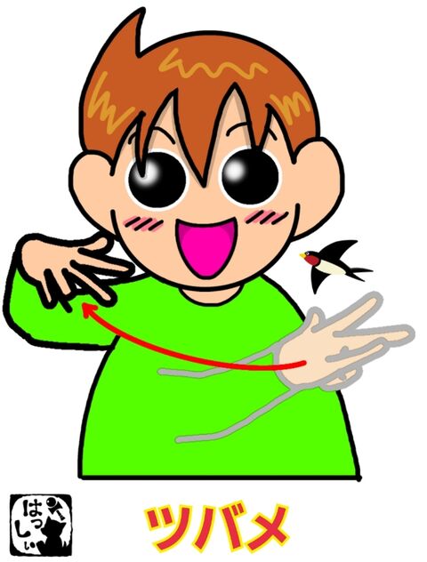 手話単語:1284 【ツバメ】【燕】 2022年04月26日 こんにちは(*・ω・)ノ【ツバメ・燕】右手の薬指だけを折り曲げて手の甲を上にしたら、左から右斜め上に素早くスッと動かします。早く飛ぶツバメの様子をイメージ!それではまた((ヾ( ◍´꒳`◍ )いつも応援ありがとうございます!良ければ下↓のしゅうくんをポチっと押してね!つばめ 「手話単語」カテゴリの最新記事 タグ :#季節・イベント#生き物(動物・鳥・虫・魚) < 前の記事次の記事 > コメント コメントフォーム 名前 コメント 記事の評価 リセット リセット 顔 星 情報を記憶 コメントを投稿する