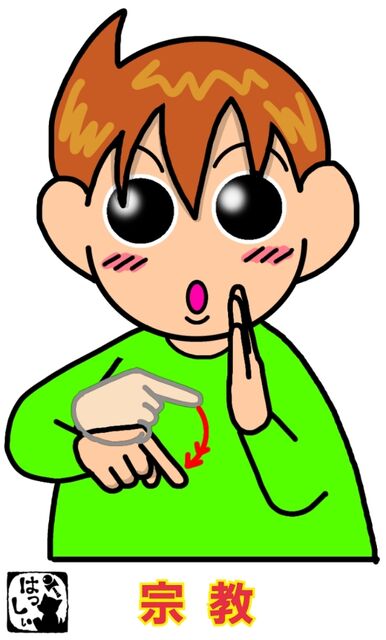 左手は拝む仕草をして、その横で右手人差し指を斜め下へ2回振ります。