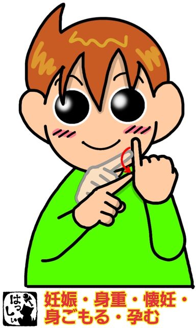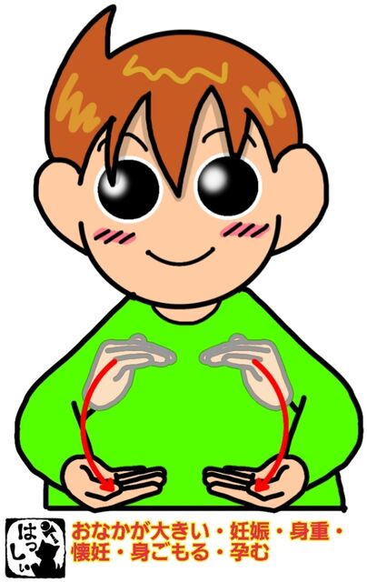 手話単語:1532 【妊娠】【妊娠する】【身重】【懐妊】【懐妊する】【身ごもる】【孕む】【おなかが大きい】 2023年01月24日 こんにちは(*・ω・)ノ2パターンご紹介します。【妊娠・妊娠する・身重・懐妊・懐妊する・身ごもる・孕む】左手の小指を立てたら、右手の人差し指で左手の小指の真ん中あたりから半円を描きます。もういっちょ!【おなかが大きい・妊娠・妊娠する・身重・懐妊・懐妊する・身ごもる・孕む】両手でお腹のふくらみを描きます。それではまた(。・ω・)ノ゙いつも応援ありがとうございます!良ければ下↓のしゅうくんをポチっと押してね!にんしん・にんしんする・かいにん・かいにんする・みおも・みごもる・はらむ・おなかがおおきい 「手話単語」カテゴリの最新記事 タグ :#生活一般・家庭#医療・介護・福祉関係 < 前の記事次の記事 > コメント コメントフォーム 名前 コメント 記事の評価 リセット リセット 顔 星 情報を記憶 コメントを投稿する