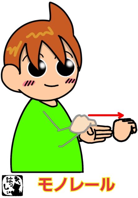 手話単語:1670 【モノレール】 2023年05月17日 こんにちは(*・ω・)ノ【モノレール】親指を倒した左手の上に、指を丸めた右手の5指をのせて、ス~っと右手だけを前に出します。左手はレール、右手は車体を表します。それではまた((ヾ( ◍´꒳`◍ )いつも応援ありがとうございます!良ければ下↓のしゅうくんをポチっと押してね!ものれーる 「手話単語」カテゴリの最新記事 タグ :#交通関係・乗り物関係・レジャー < 前の記事次の記事 > コメント コメント一覧 (2) 2. はっしぃ 2023年05月18日 09:28 はたぼーさん おお~手話学習のお役に立ててうれしいです! 「ろう者と・・・」そうなんですよね。何のために手話をやるの? って事で、ただただ単語を覚えても手話は使えないし手話は使わなければ 意味がない。ろう者の人とたくさんお話したほうが覚えられますからね! ろう者のみなさんもたくさん教えてくれるし。 大きく一歩前進ですね! 私はず~っと足踏みしていますが・・・・w 0 はっしぃ がしました 1. はたぼー 2023年05月17日 21:54 いつも、手話単語ありがとうございます😊 忘れていた単語、初めて出会った単語に「あ、そうそう、」とか「へー、そうなんや」って1人て相槌打ちながら、単語覚えています。 昨日、ステップアップ講座に行って、今年の目標何?と聞かれました。 「ろう者の方と一杯お話する事」と答えました。 はっしぃさんの言葉が、背中押して頂きました。 少しずつだけど、一歩前に進みます💕 0 はっしぃ がしました コメントフォーム 名前 コメント 記事の評価 リセット リセット 顔 星 情報を記憶 コメントを投稿する