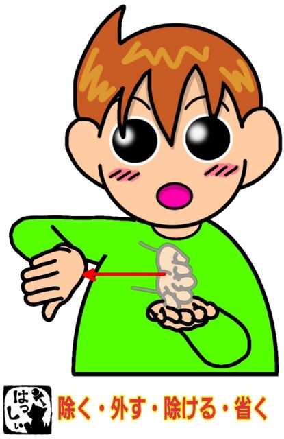手話単語:1716 【除く】【外す】【除ける】【省く】 2023年07月01日 こんにちは(*・ω・)ノ【除く・外す・除ける・省く】左手の手のひらに右手の親指側をのせて、右手を右側へのけるように外へ出します。 それではまた((ヾ( ◍´꒳`◍ )いつも応援ありがとうございます!良ければ下↓のしゅうくんをポチっと押してね! のぞく・はずす・のける・はぶく 「手話単語」カテゴリの最新記事 タグ :#生活一般・家庭 < 前の記事次の記事 > コメント コメントフォーム 名前 コメント 記事の評価 リセット リセット 顔 星 情報を記憶 コメントを投稿する